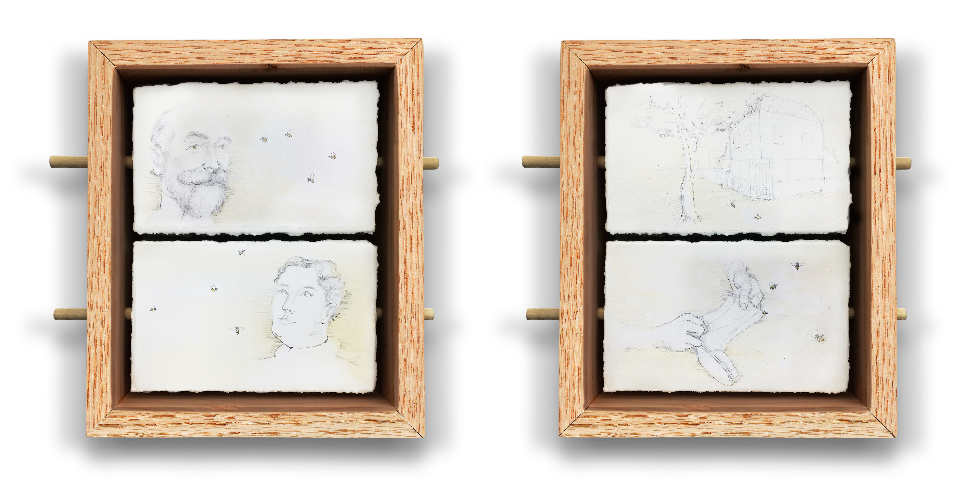 8 x 7 pencil, paper, honey, wood, glue